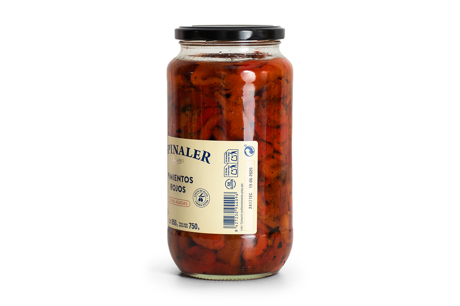 Los pimientos escalivados Espinaler se asan en parrilla a fuego lento en un proceso artesanal para luego ser conservados en tarros con aceite de oliva virgen extra, gracias al cual se potencia el sabor del pimiento asado a fuego. Disponible entero o en tiras.