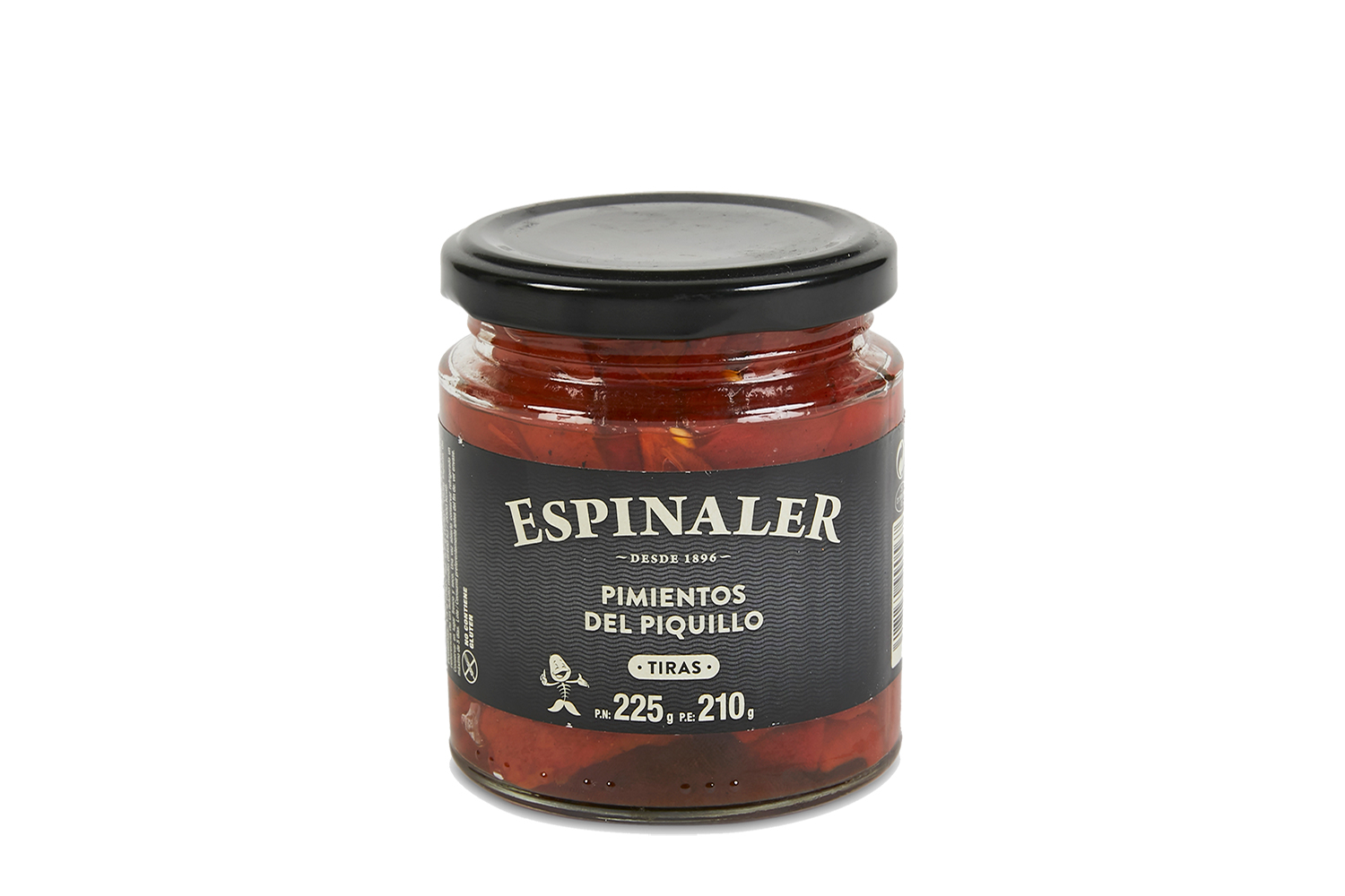 El pimiento del piquillo Espinaler con Denominación de Origen (DOP) es un pimiento del piquillo en conserva procedente de la huerta de Lodosa (Navarra). De excelente sabor gracias a su asado con madera de haya y su pelado artesanal es un alimento ideal para elaborar tapas, canapés, ensaladas o bocadillos entre otras recetas. Disponible entero o en tiras.
